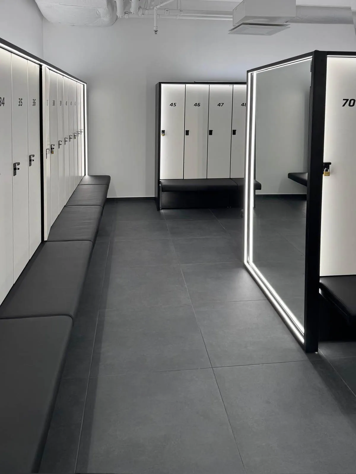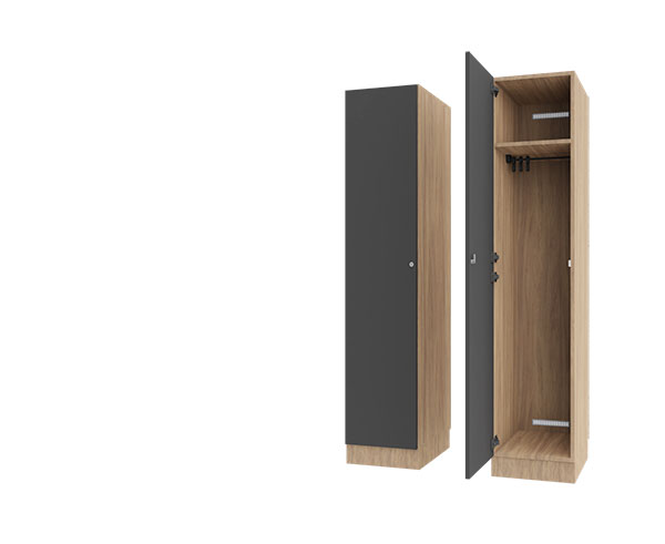 Niezbędne w każdym obiekcie sportowym. Proste w formie, ze zintegrowanym lustrem oraz otworem na umieszczenie suszarki. Bogata oferta kolorystyczna pozwala na dopasowanie do pozostałych elementów przestrzeni.