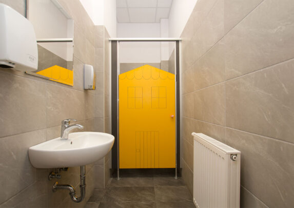 Stawiamy na innowacyjne rozwiązania, jak opatentowany system „bezpiecznych palców” stosowany w produktach takich jak kabiny WC i szafy szkolne. Sami produkujemy też okucia, czyli: zamki, zawiasy i inne akcesoria. Takie podejście otwiera nam ogromne możliwości adaptacji produktów do unikalnych potrzeb klientów.