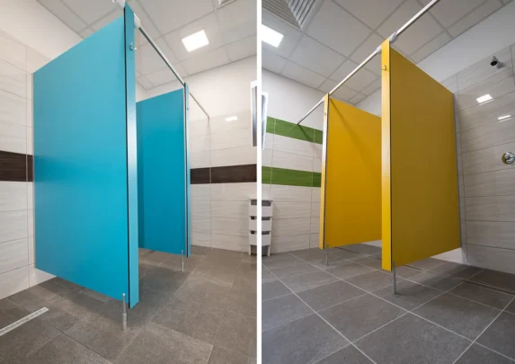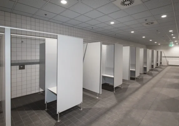 Przez lata swojej działalności mieliśmy okazję realizować już wiele niezwykle zróżnicowanych projektów, również takich, w których konieczne okazało się przełamanie schematów i korzystanie z oryginalnych rozwiązań. Nasze systemowe kabiny do toalet, ścianki giszetowe (wc i prysznicowe), ubraniowe szafki BHP, sprawdzą się zarówno w mniejszych, jak i większych pomieszczeniach o różnym kształcie.