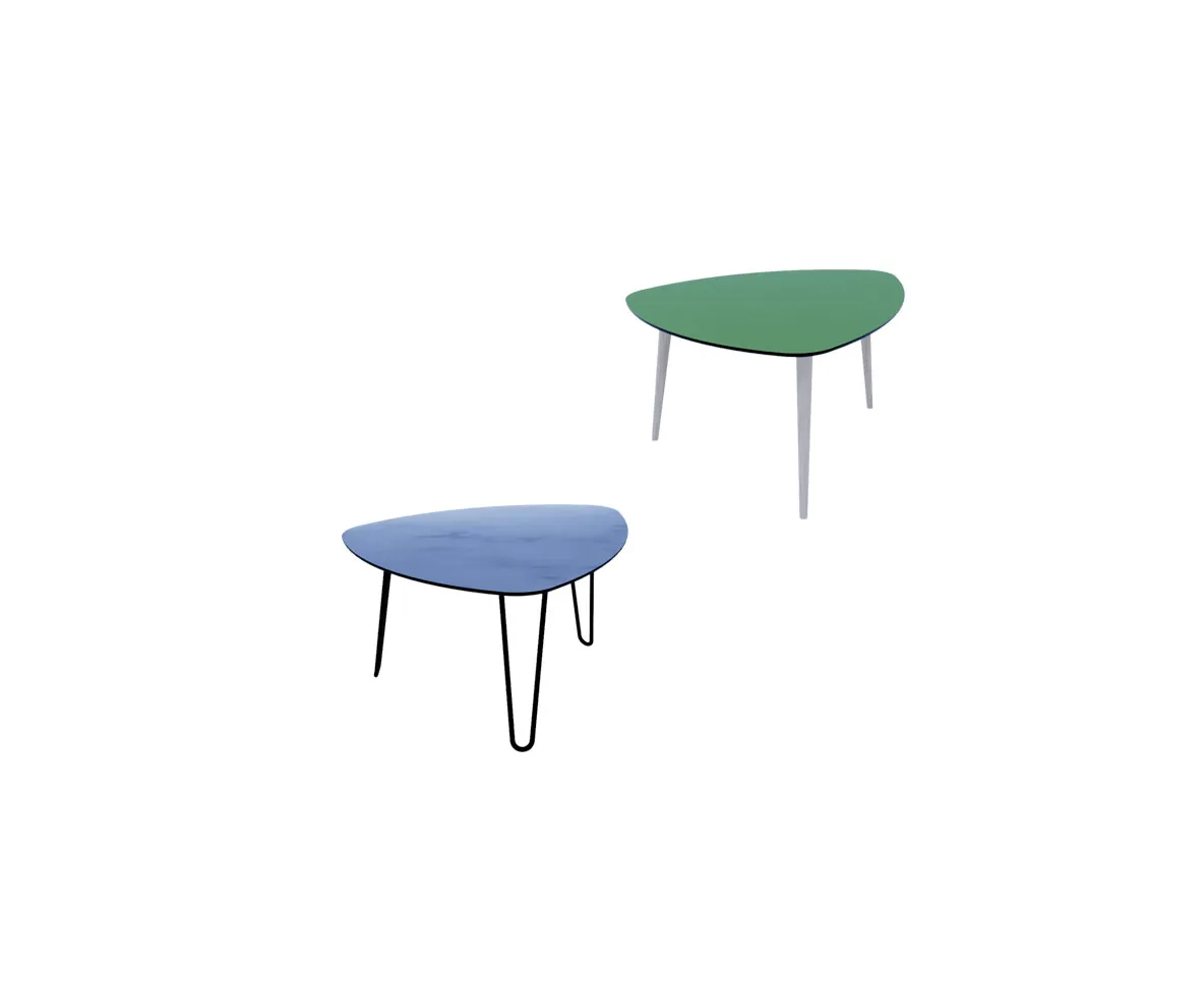 Stolik 3L, który zachwyca swoim charakterystycznym kształtem. Blat z zaokrąglonymi kątami wykonany jest z wysokiej jakości płyty HPL, co zapewnia trwałość, bezpieczeństwo i odporność na uszkodzenia. Idealnie wpisuje się w każde wnętrze, nadając mu nowoczesny i elegancki charakter.