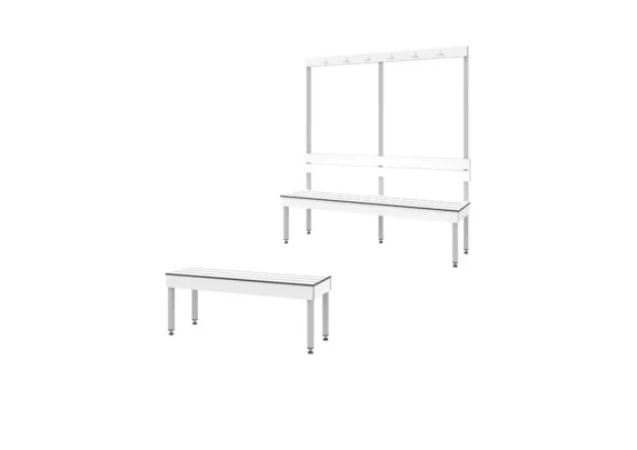 Nasze ławki polecamy także jako uzupełnienie szafek zintegrowanych z siedziskami. Wolnostojące ławki szatniowe idealnie dopełniają wnętrze, zwiększają funkcjonalność szatni i dodają jej przyjaznego charakteru. Można je ustawić pod wolnymi ścianami lub wyspowo. Drugi sposób zagospodarowuje niewykorzystane zwykle miejsce – i przystosowuje szatnię do większej liczby użytkowników. Każdą ławkę możemy wyposażyć w haczyki na odzież i półki na buty.